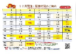 12月 屋島校の開館・閉館時間のご案内