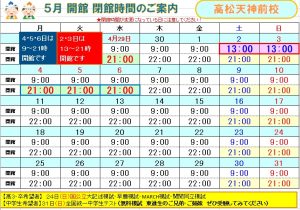 天神前校は5月GWも開館します! 4日から6日も「9時から21時」開館!